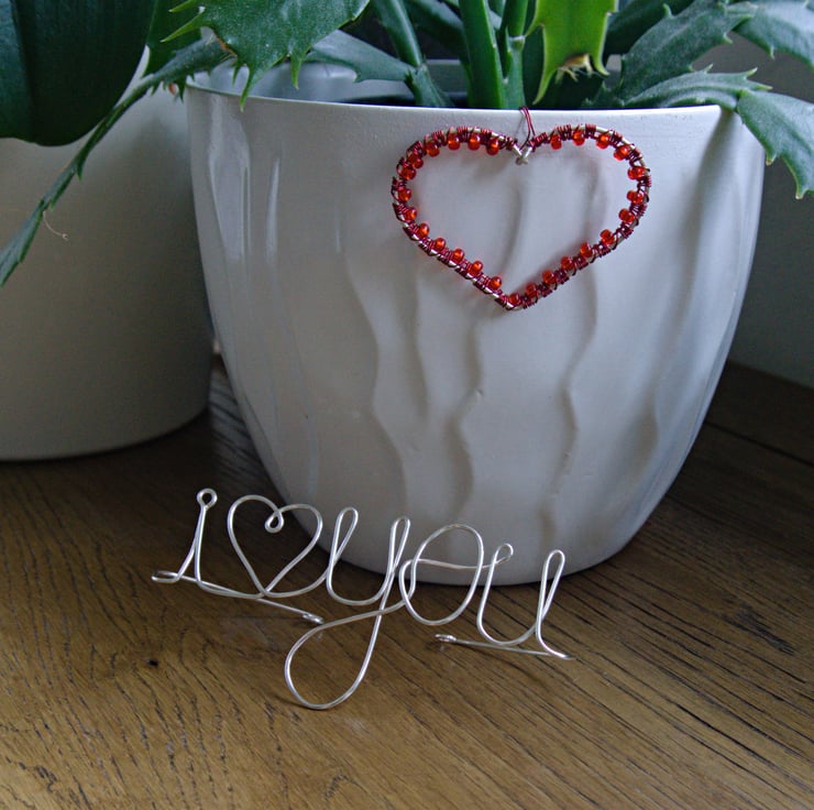 This cute little ornament is the perfect way to express your love for the special person in your life! I've used silver plated copper wire to write 'i heart you' & created two little legs to allow the decoration to stand up. It would make a lovely gift for Valentines (or any day of the year!) & will make your loved one smile every time they see it.