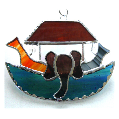 The Noah's Ark is 12cm long and 9cm high. It hangs from a little silvery chain which is securely soldered to the roof of the ark.