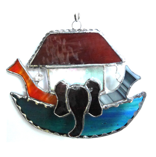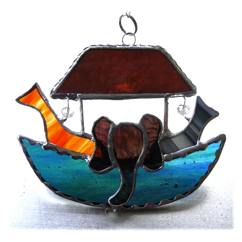 This is a stained glass suncatcher made using the Tiffany copper foil technique.