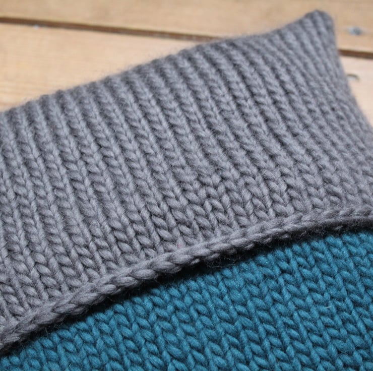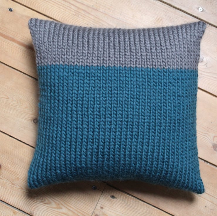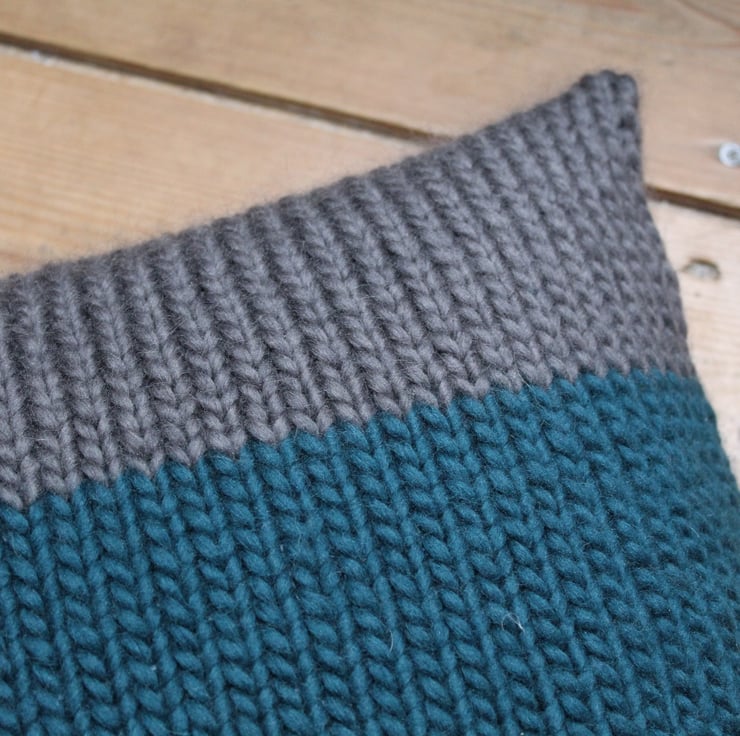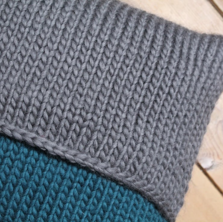 Hand knitted in 100% sustainable super soft chunky merino wool. Knitted in plain stitch in colours of emerald green and dark grey.