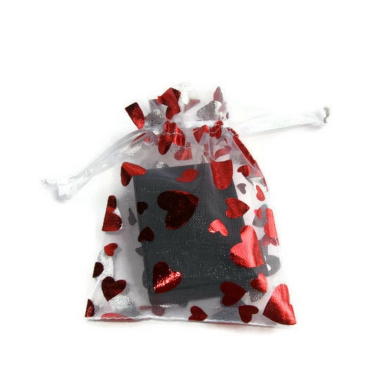 Your red resin heart necklace will be sent to you boxed with a gorgeous heart patterned organza gift bag.