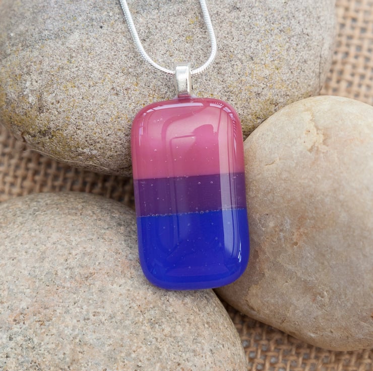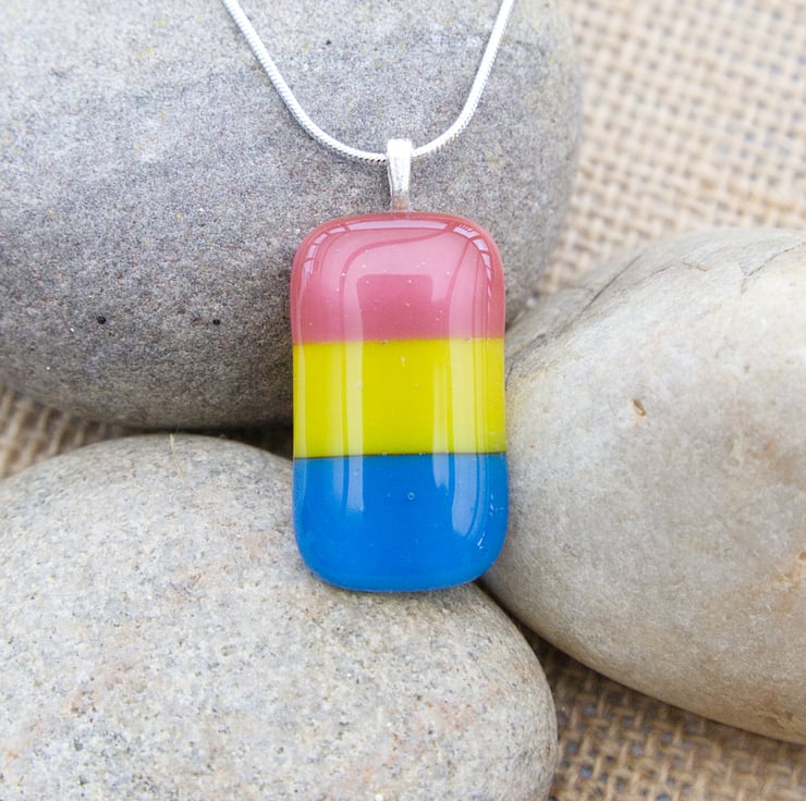 Show off your pride with these handmade glass pendants. There are six main designs, Rainbow, Lesbian, Bisexual, Non-Binary, Pansexual, Asexual and Transgender (select which you'd like from the drop down menu, if you would like more than one of the same flag then please get in contact to make sure I have enough in stock). If there's a pride flag you would like but isn't here, then do get in touch, I don't want anyone to be left you (there may be constraints with the glass colours available to me)