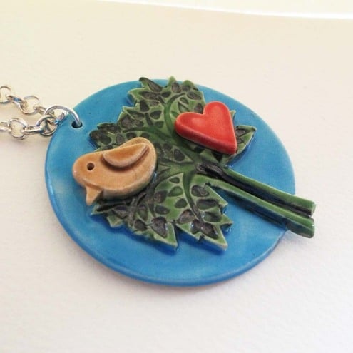 This cute little ceramic pendant is made from white earthenware clay.
