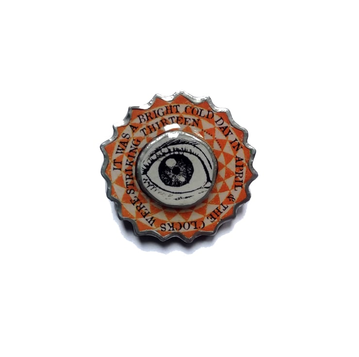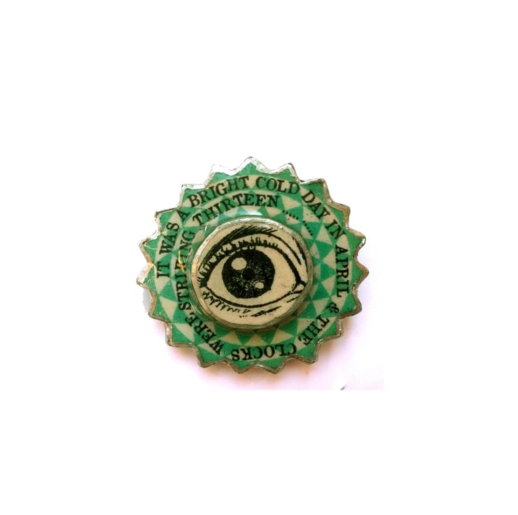 The brooch measures just over 4cm x 4cm. It is approx 4mm thick and the eye layered on top protrudes a further 2mm.