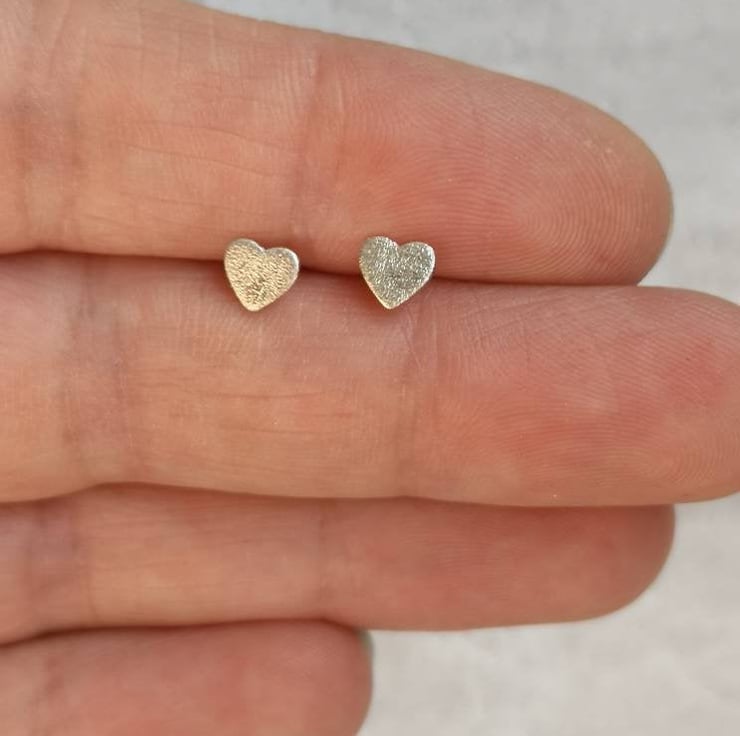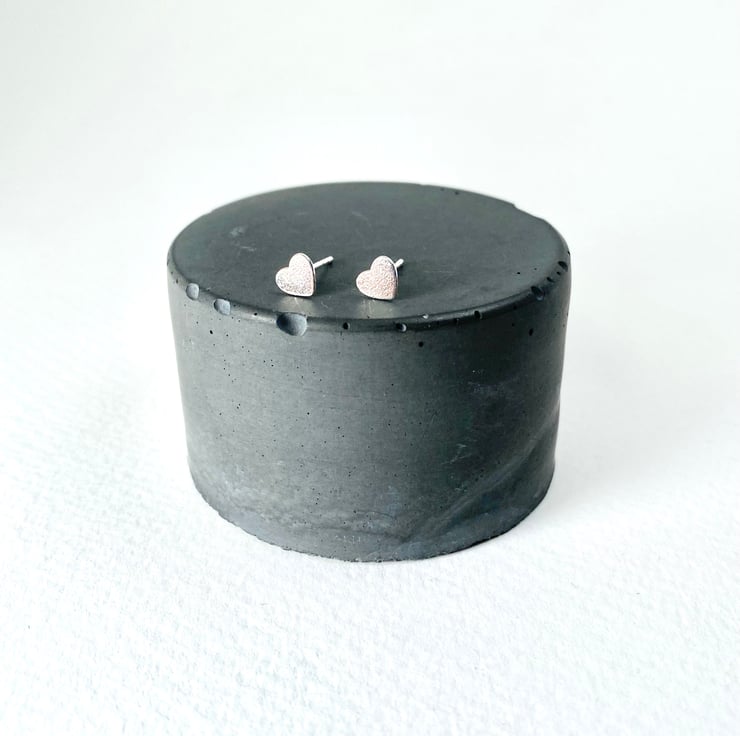 The small silver heart studs measure approximately 5mm across and have a lovely frosted finish.