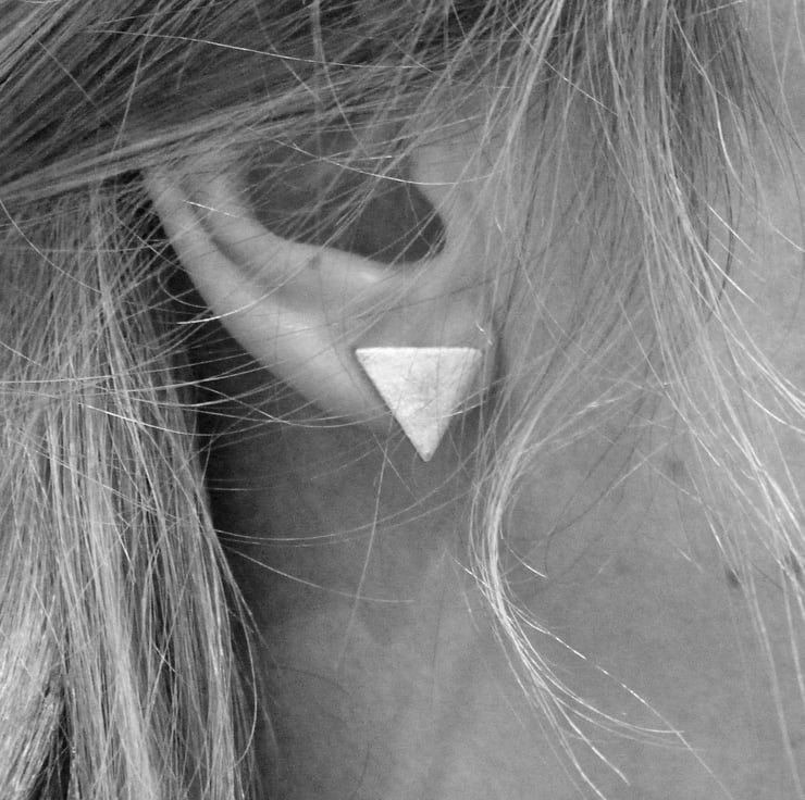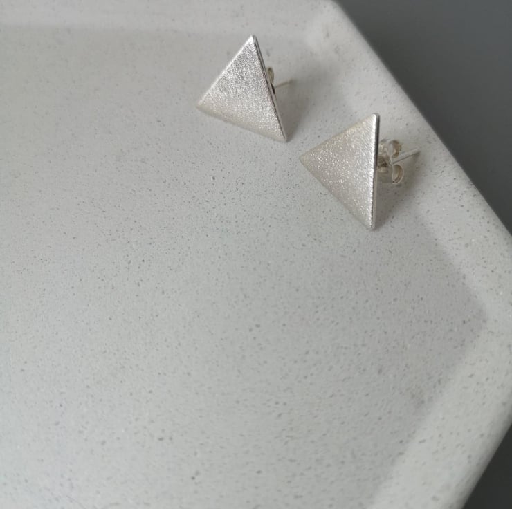 Frosted sterling silver triangle studs, measure 1.5cm along each side.