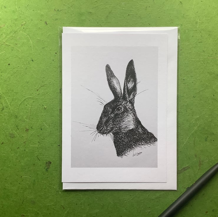Greetings card featuring a print of my pen and ink drawing of a hare.