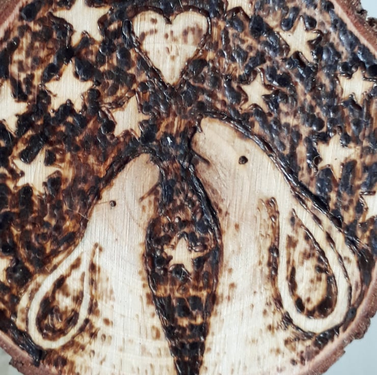 Each wood slice is unique as I hand draw each design onto the slice before I burn and they then take on their own personality.