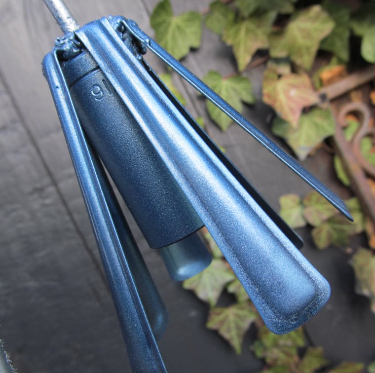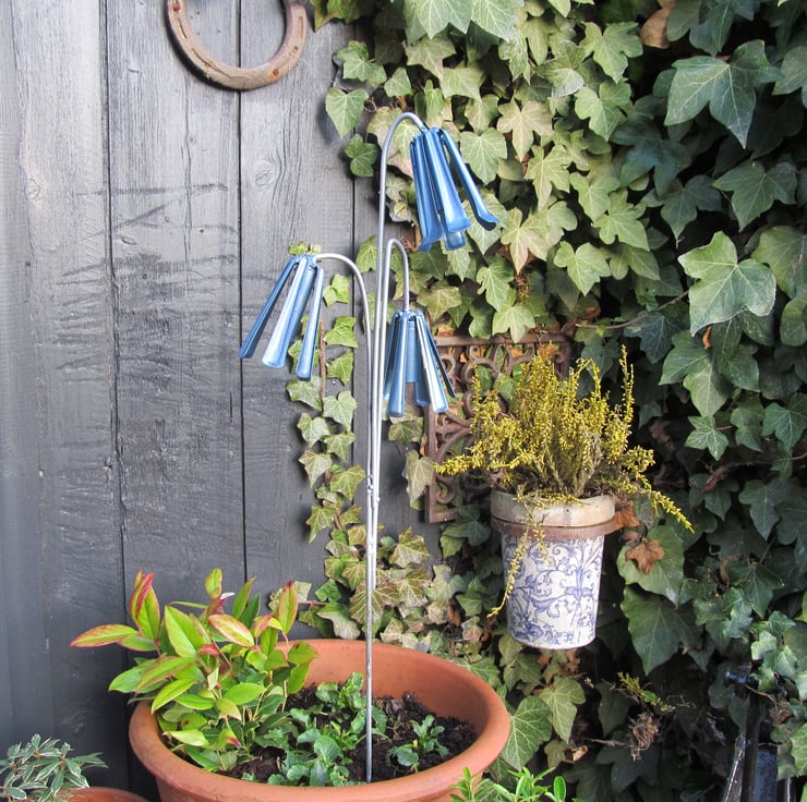Each bluebell is mounted on a main galvansed metal stem and the flowers themselves have been finished with 2 coats of good quality satin sapphire blue paint. As the seasons pass, they will develop a gradual patina.