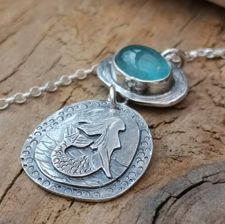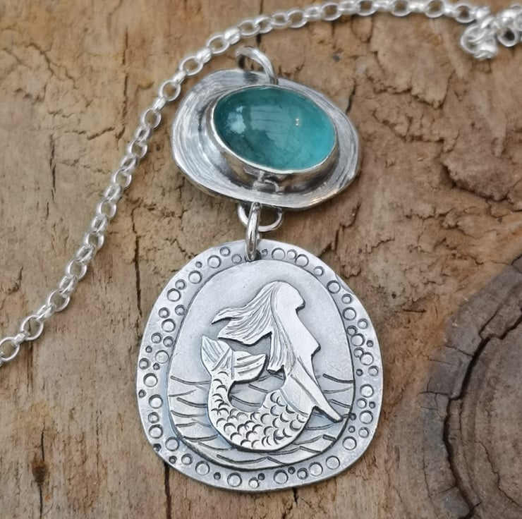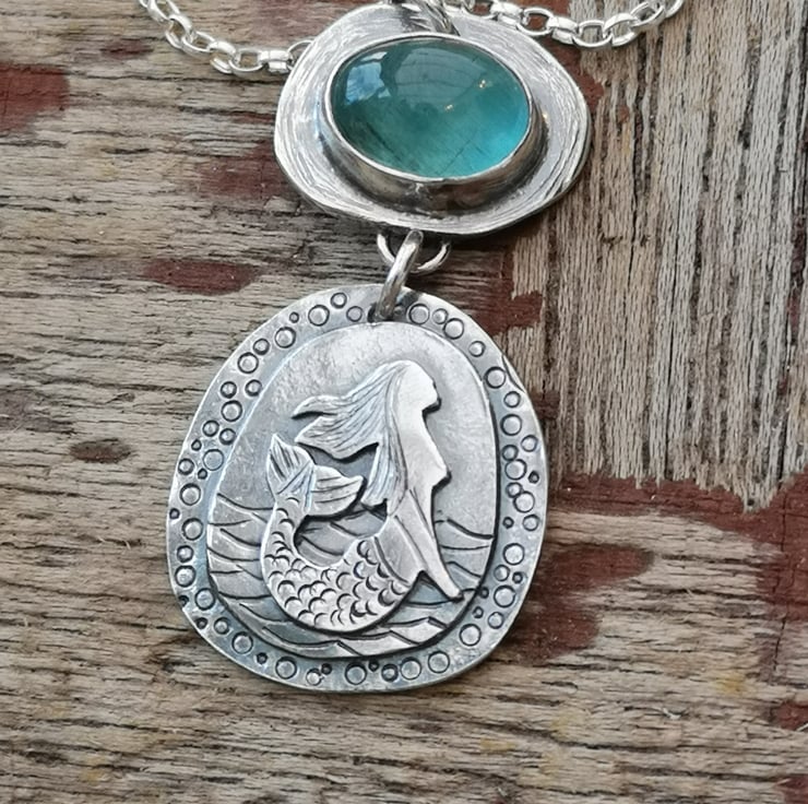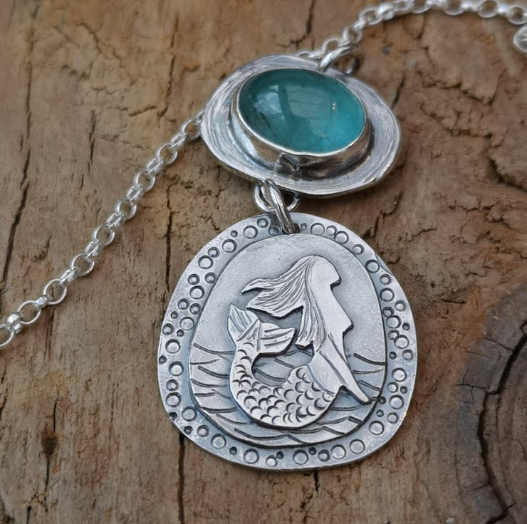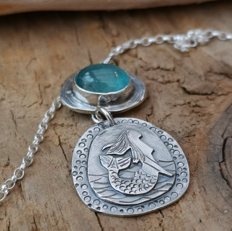 I have made this pendant in sterling silver, carefully piercing out the shapes, hand engraving and metal stamping to add detail before soldering everything into place and adding a beautiful blue apatite gemstone. The pendant has an oxidised finish.