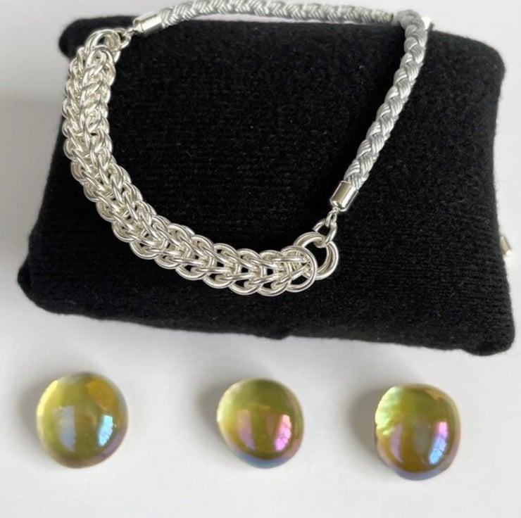 Chainmaille is an ancient art form dating back to medieval days, there are thousands of different chainmaille patterns and I'm learning new chainmaille patterns and incorporating them into my designs.