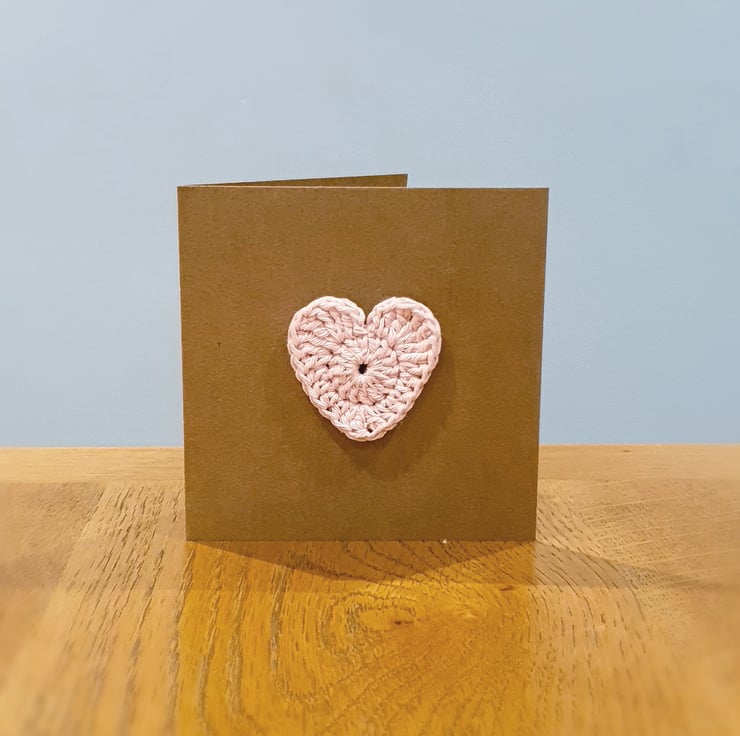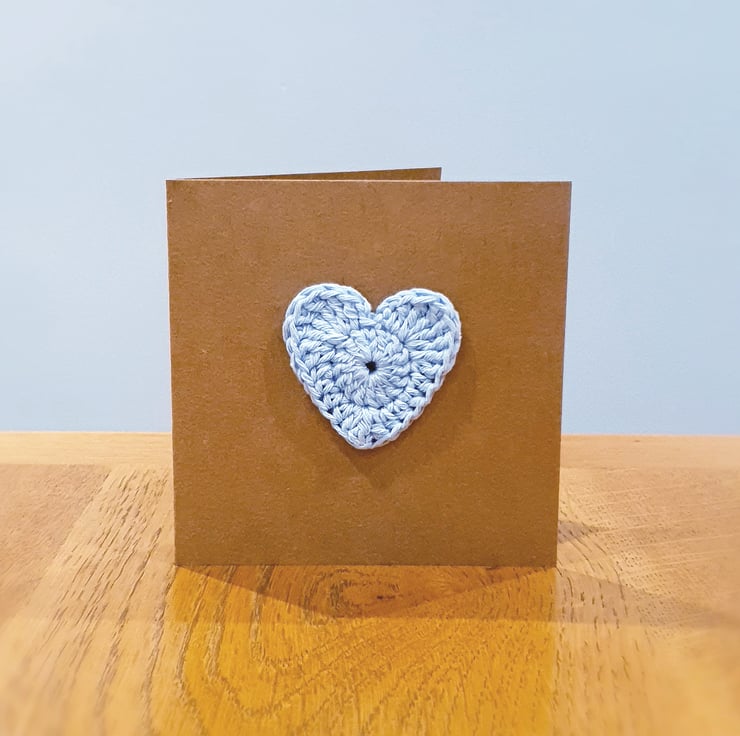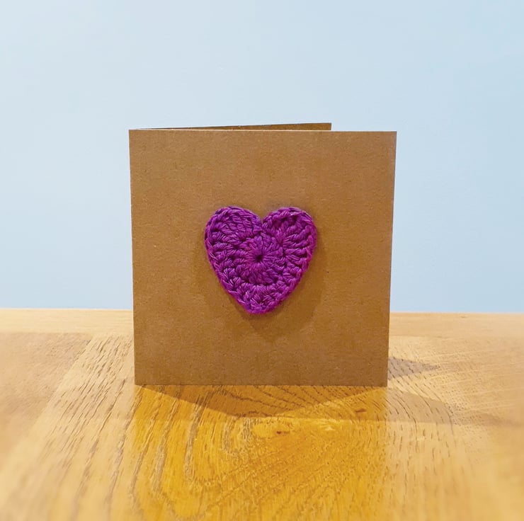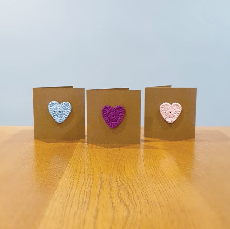 Cute little cards you could use for Valentine's Day, or just to make someone feel special! Each card features a crocheted heart in pastel pink, blue, or plum.