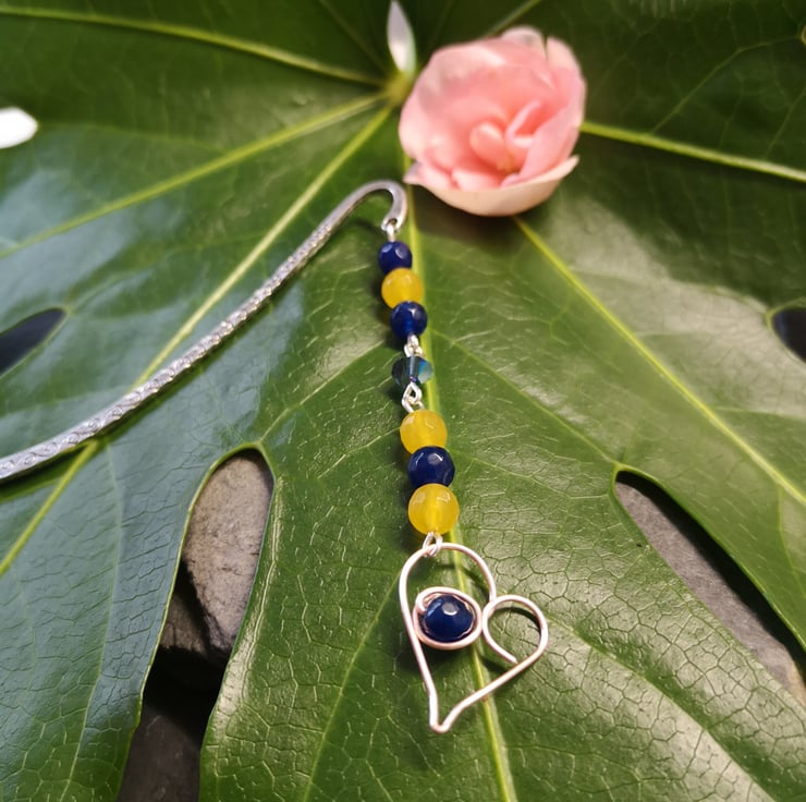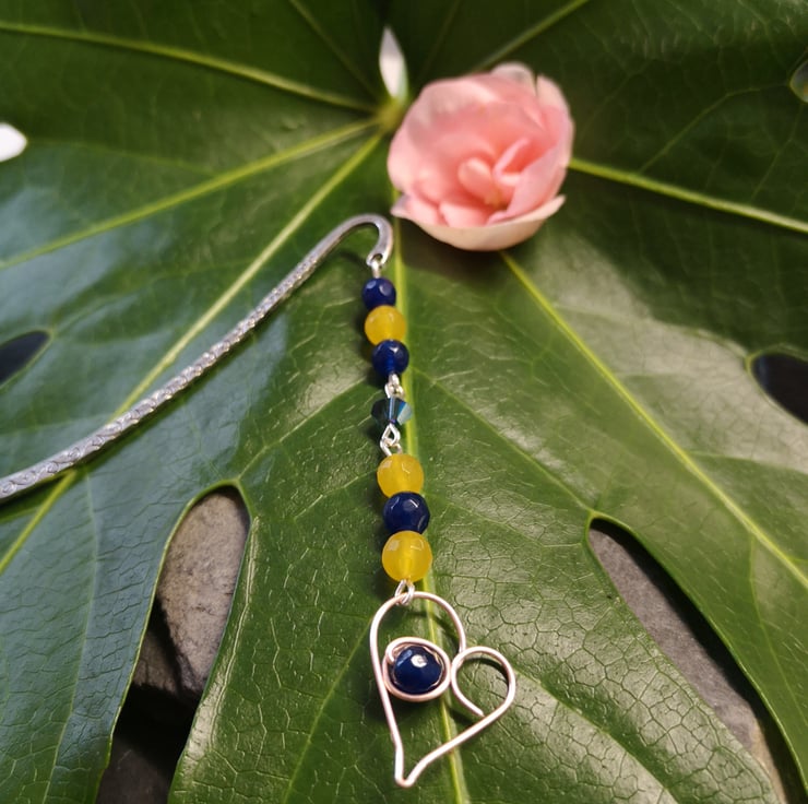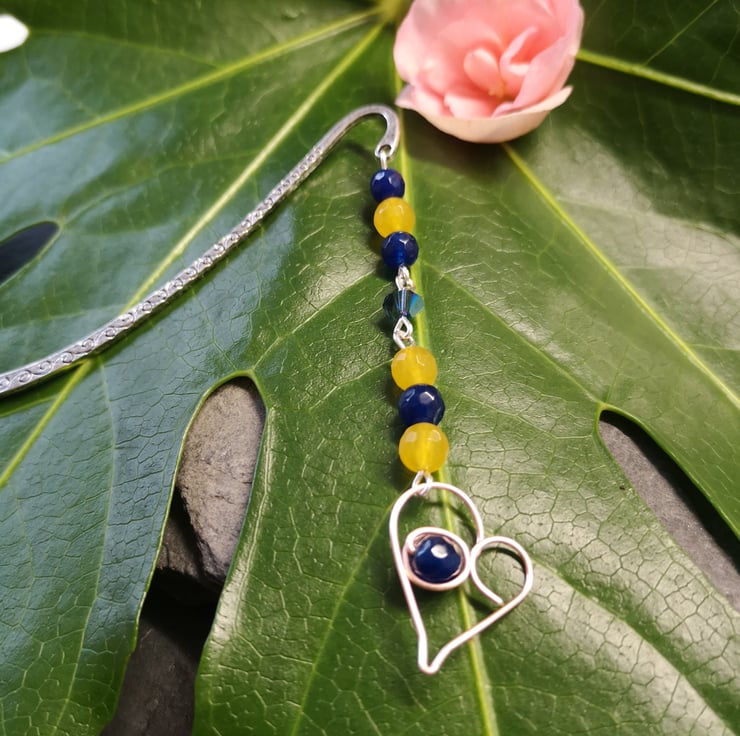 This decorative bookmark measures approx 6.5cm for the dangle and the bookmark attachment is approx 9cm.
