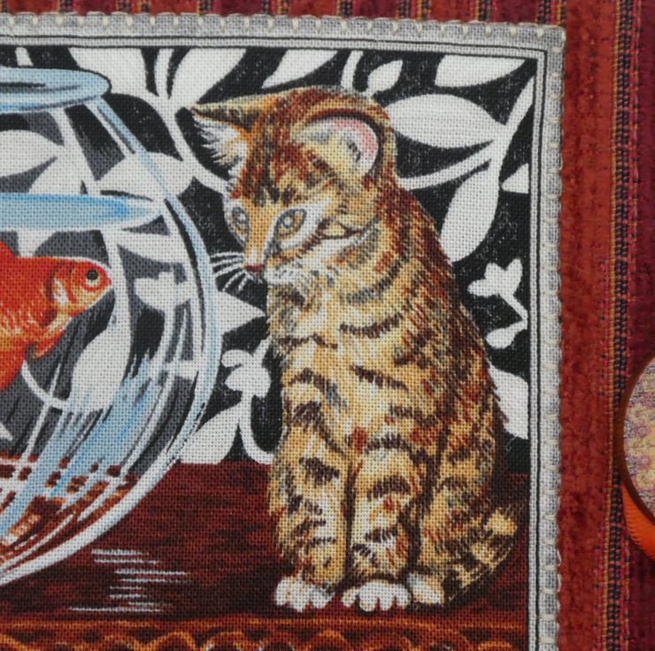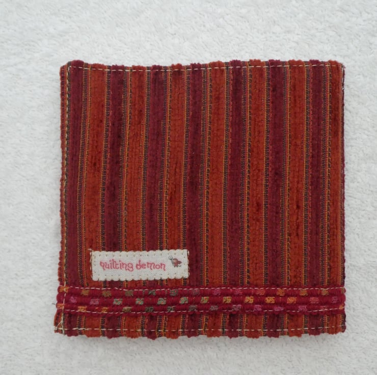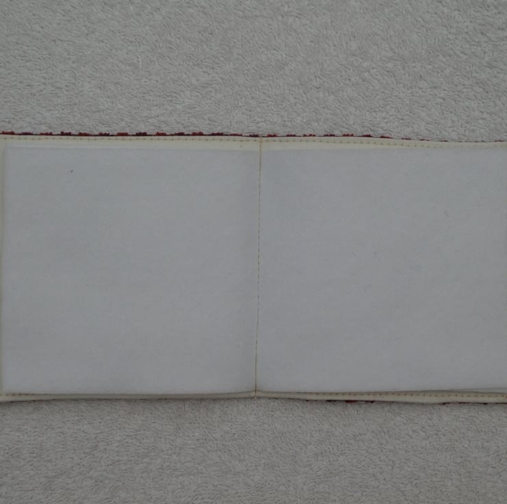 I have created this cute sewing needle case from a lovely upholstery weight print cotton. It has an applique decorative panel and embellished with braid. The needle case is lined in a plain cream cotton fabric, has interfacing for structure and has 2 felt inserts to keep your needles safe. The case has a printed wooden button and elastic to close, and is top stitched for a professional finish.