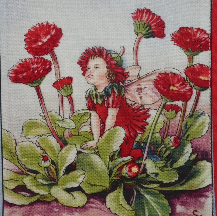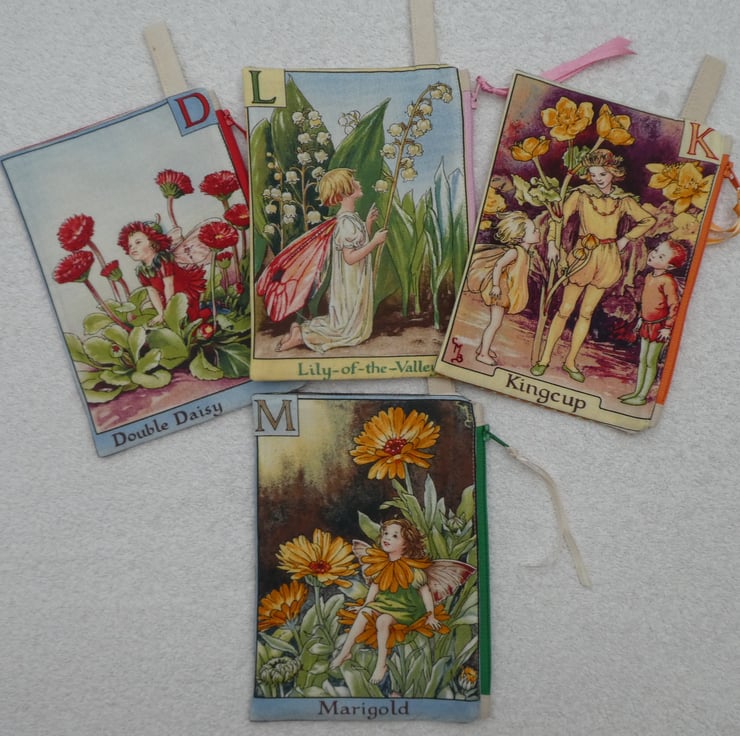 I have designed and created this lovely purse from a Flower Faerie print fabric panel.The purse has a zip opening, and a coordinating plain fabric on the back. It is fully lined in cream unbleached cotton.