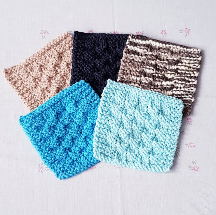 Masculine cotton reusable scrubbies, face cloths, hand-knitted