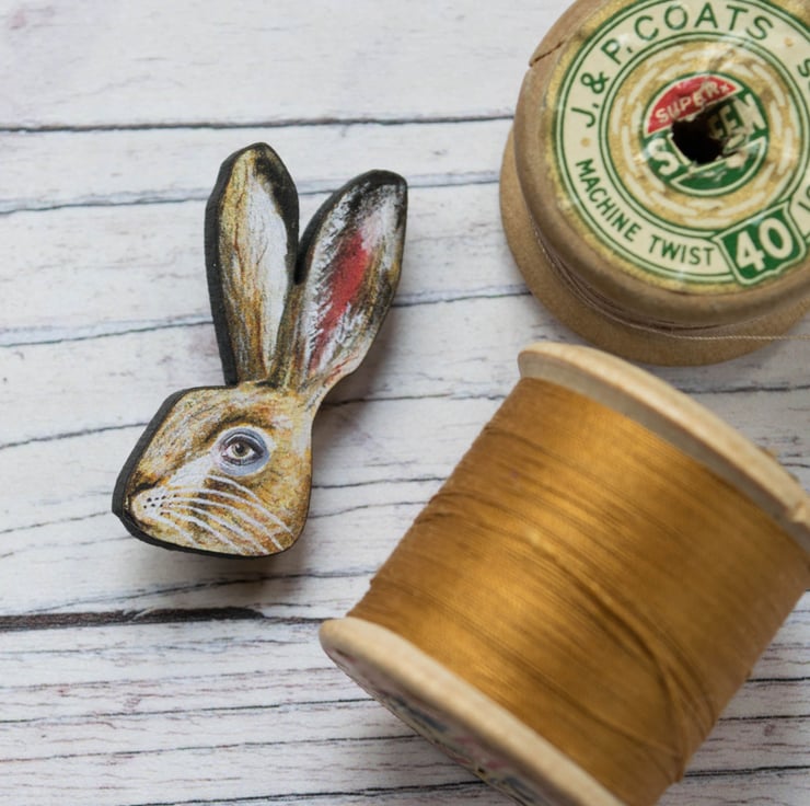 A cute little hare badge, how can you not resist! Illustrated and designed by myself, and laser cut within the UK.