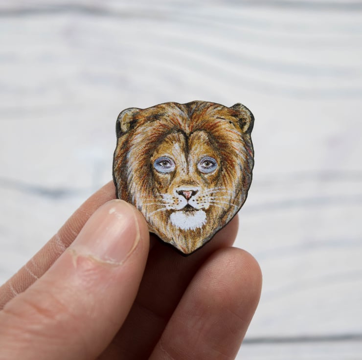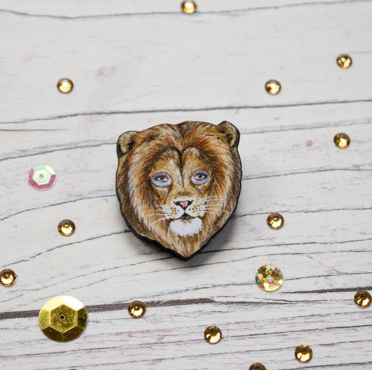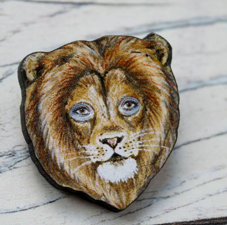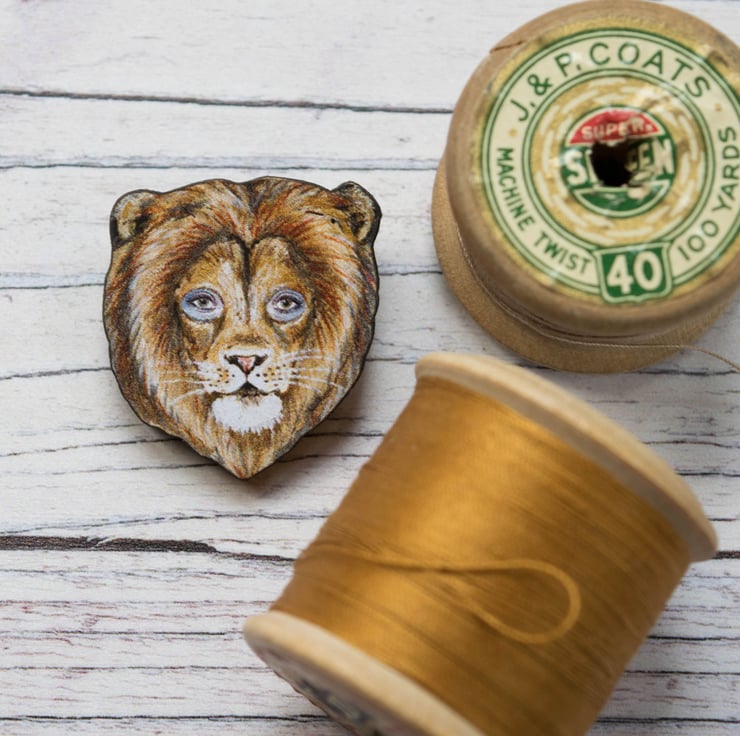 Here's a friendly lion face to brighten your day! He is a wooden laser cut wooden brooch/ badge, and has been designed and illustrated by me. Printed and laser cut within the UK.