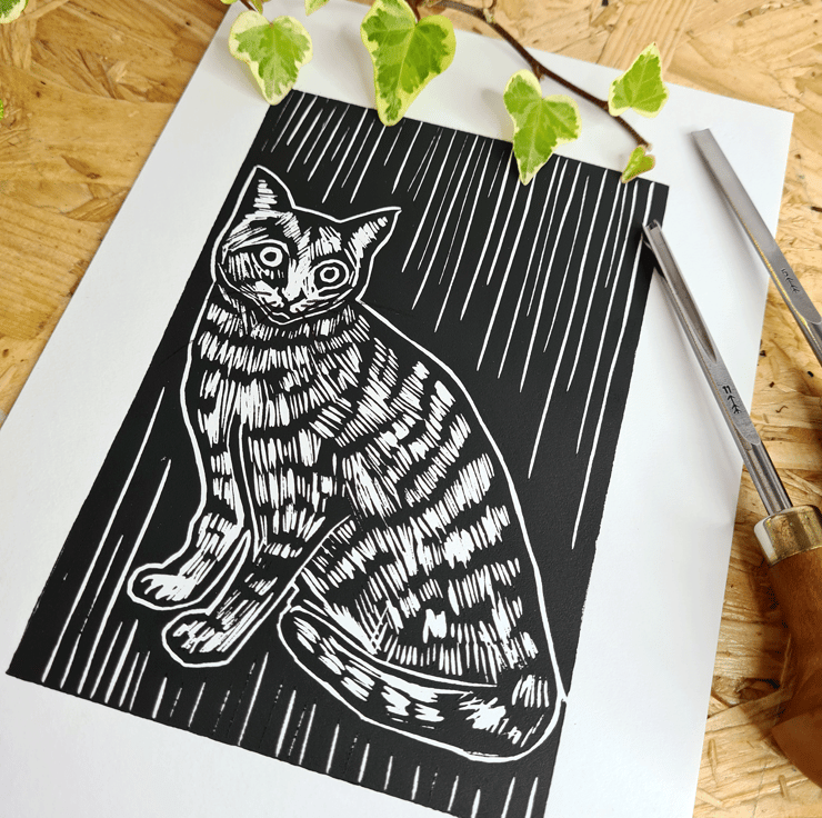 This is my Linocut Print of a lovely Tabby Cat.