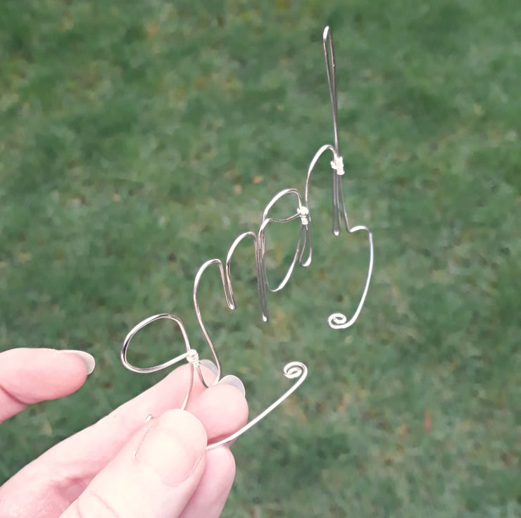 I also have a beaded version of this design, shown in the final photo, & available here: https://folksy.com/items/7408932-Beaded-Home-Freestanding-Wire-Writing-Decoration-with-Green-Beading