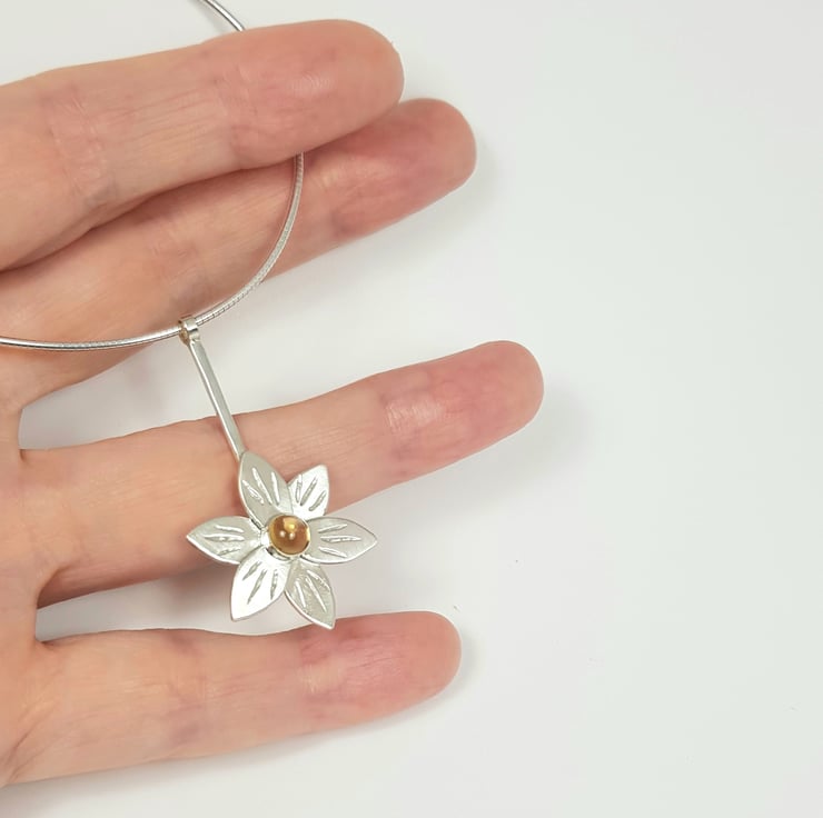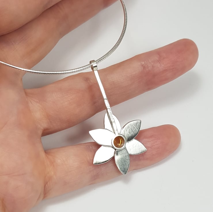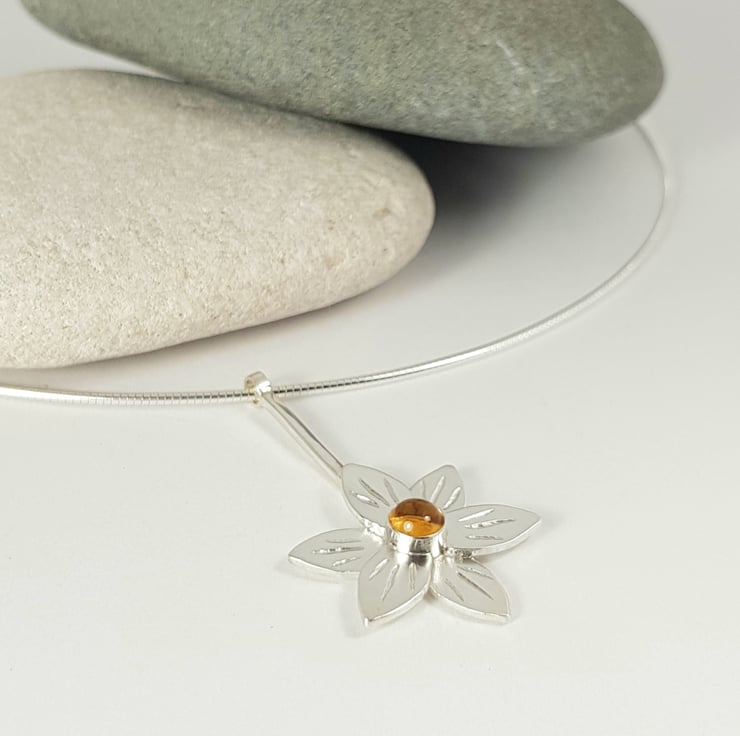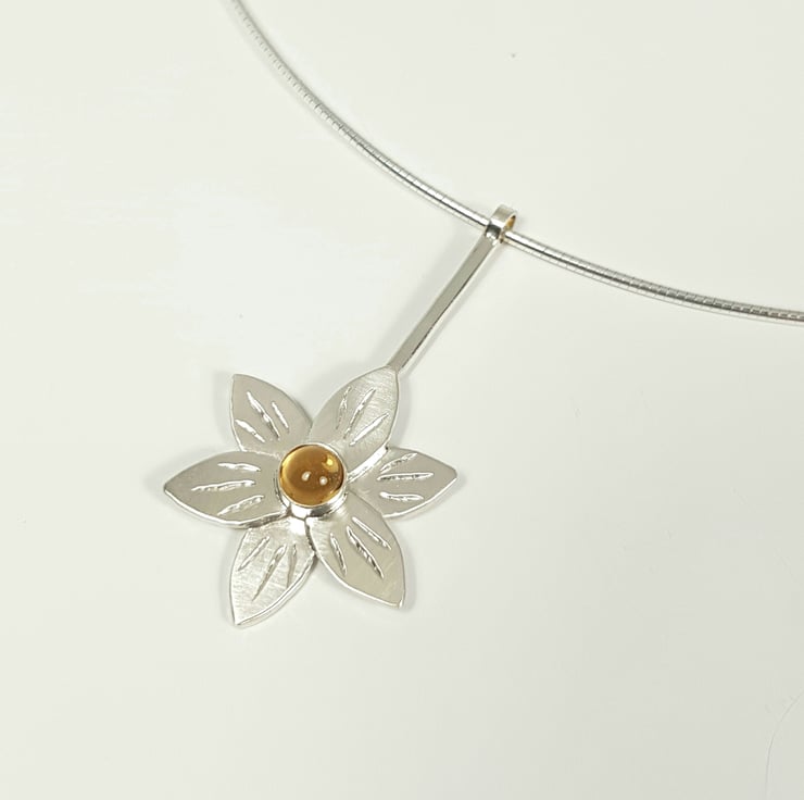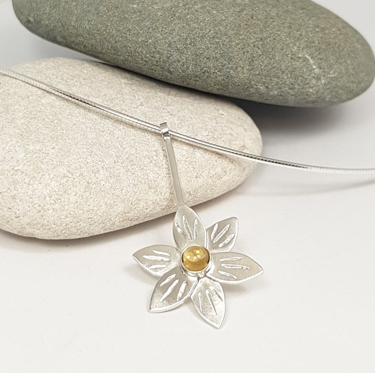 Handmade sterling silver flower pendant featuring a gorgeous 5mm citrine.