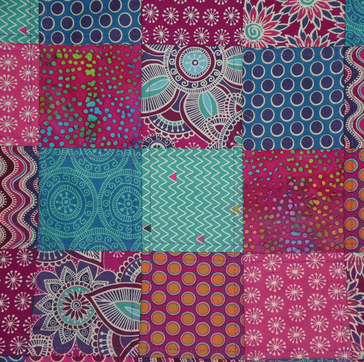 Please note that there are 2 of these bags available. The patchwork pieces are arranged differently on each bag. Pictures of both fronts are shown, so please state if you have a preference.