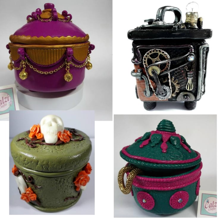 A pretty trinket box in a shabby chic vintage style, made from polymer clay.