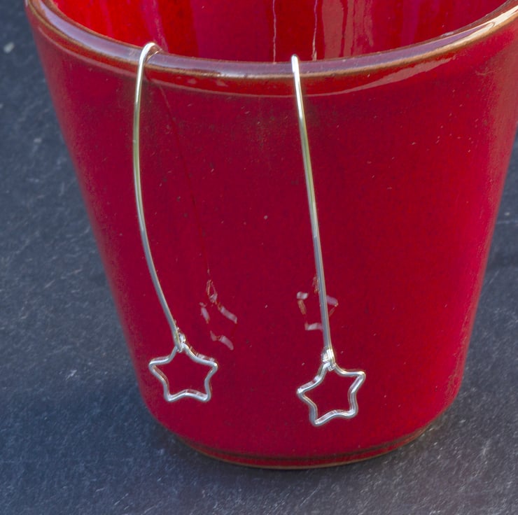 Sterling silver star earrings. The stars measure 1cm x 1cm and are soldered to ear wires that measure 4.5cm in length.
