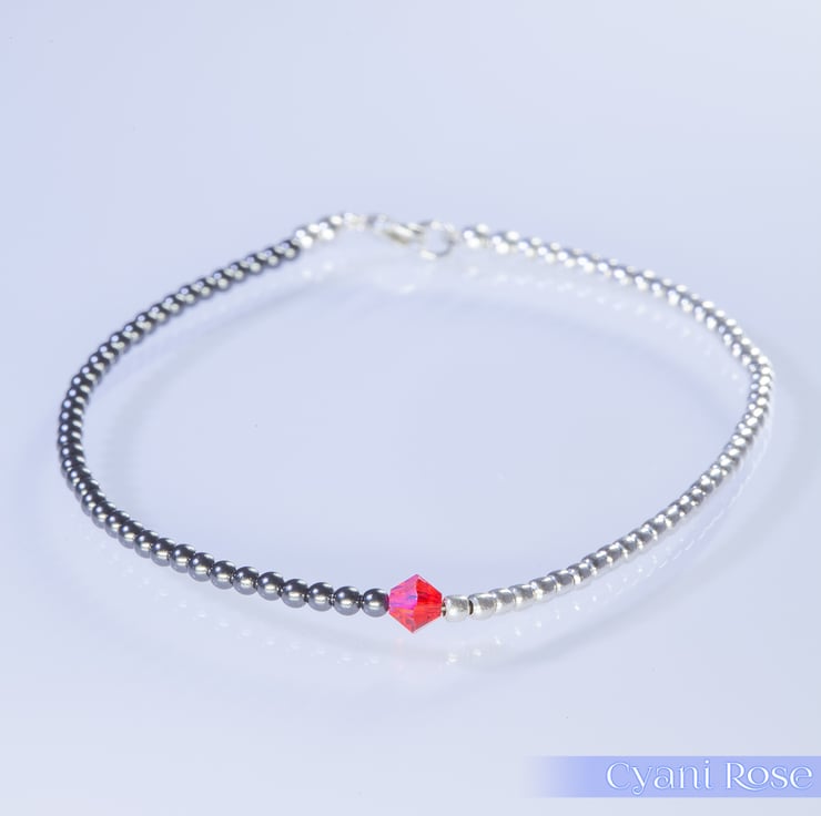 Dainty single bracelet made from Sterling silver beads 2mm and 2.5mm, clasp and findings.
