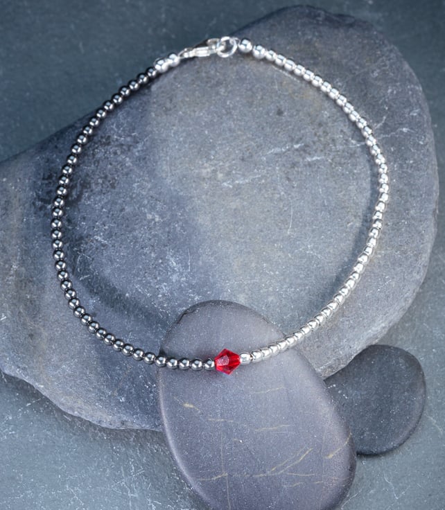 Dainty single bracelet made from Sterling silver beads 2mm and 2.5mm, clasp and findings.
