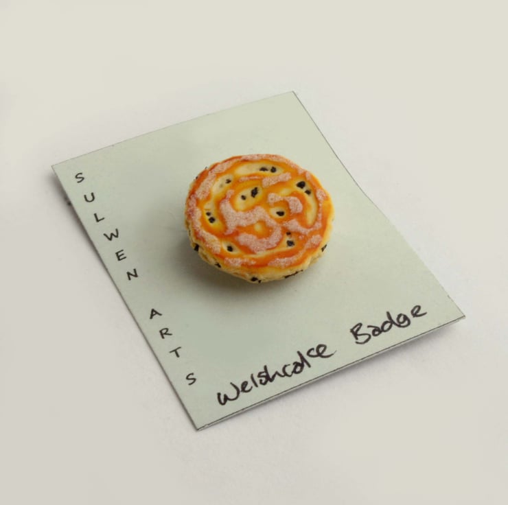 The welshcake measures roughly 2cm across at its widest and comes displayed on a smart cardboard backing.