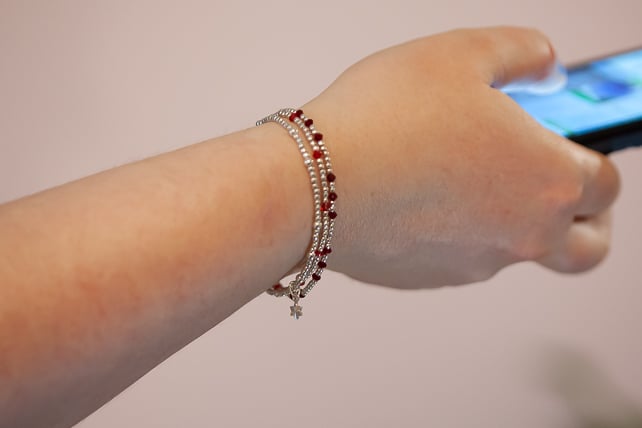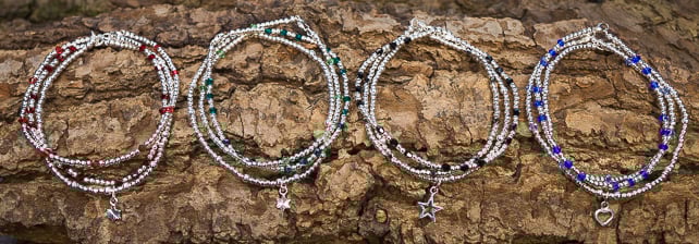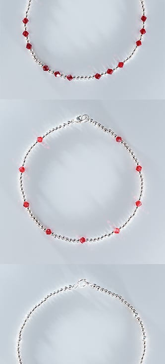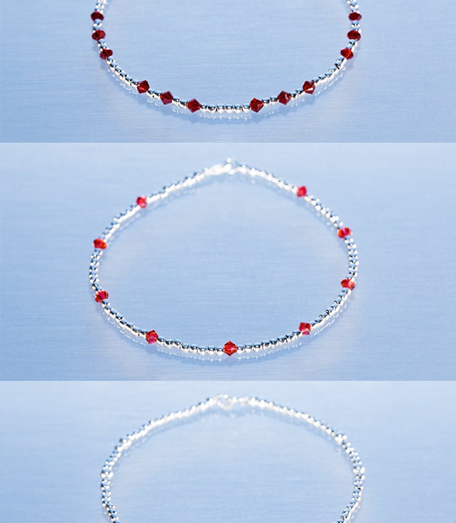 We designed these dainty bracelets to stack together as a complimentary trio.