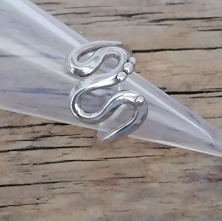 A sterling silver or gold handmade Estuary ring 3 mm band wire suitable for both men or women. Decorated with metal blobs.