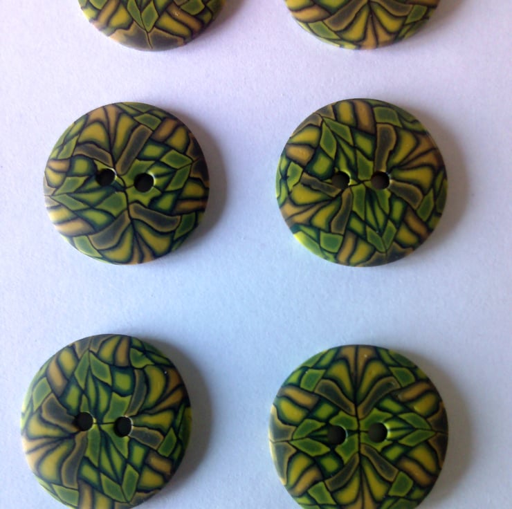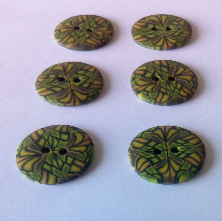Set of 6 Medium size buttons. Buttons are handmade by me from polymer Fimo clay.