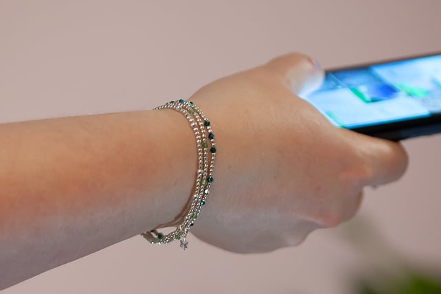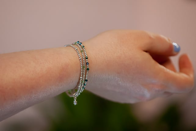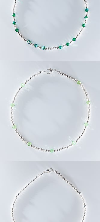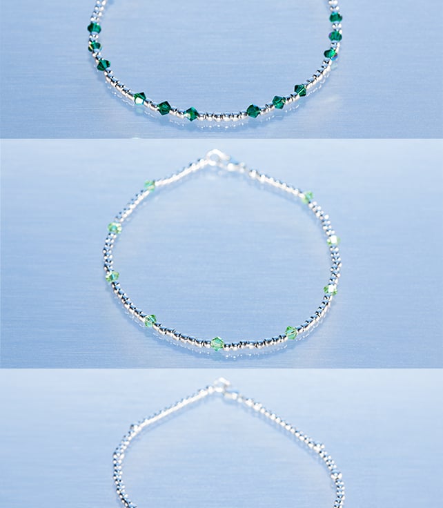 We designed these dainty bracelets to stack together as a complimentary trio.