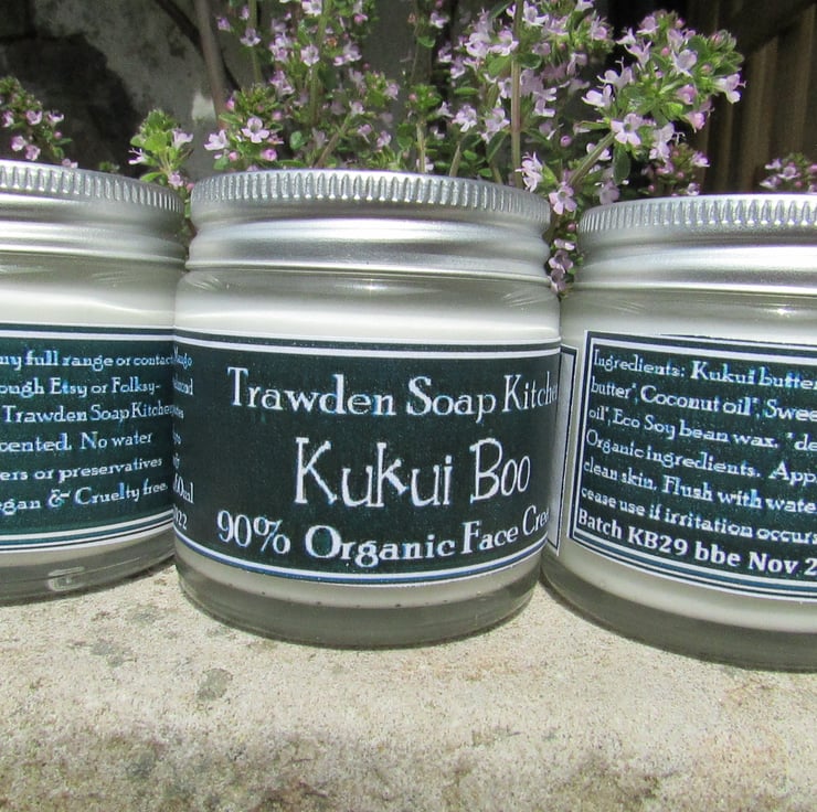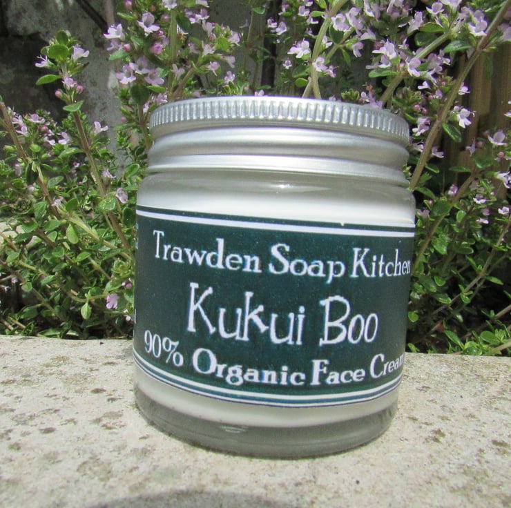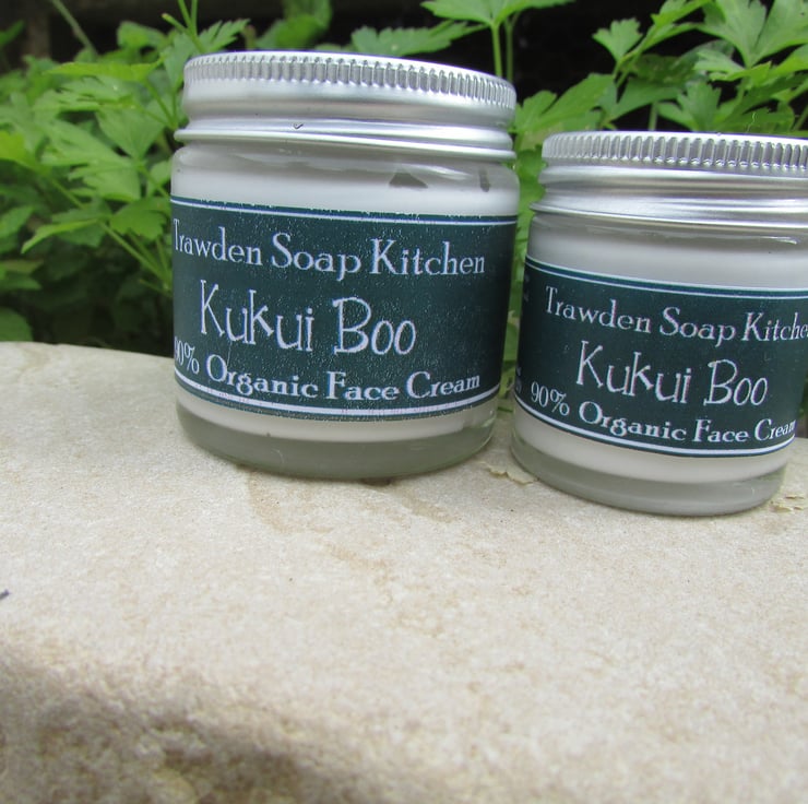 Kukui Boo 90% Organic Face Cream, my unscented version. This makes a beautiful cream to pep up your skin and increase radiance by day, replenish by night.