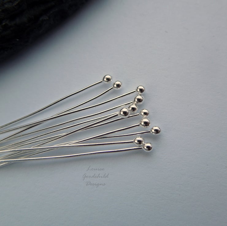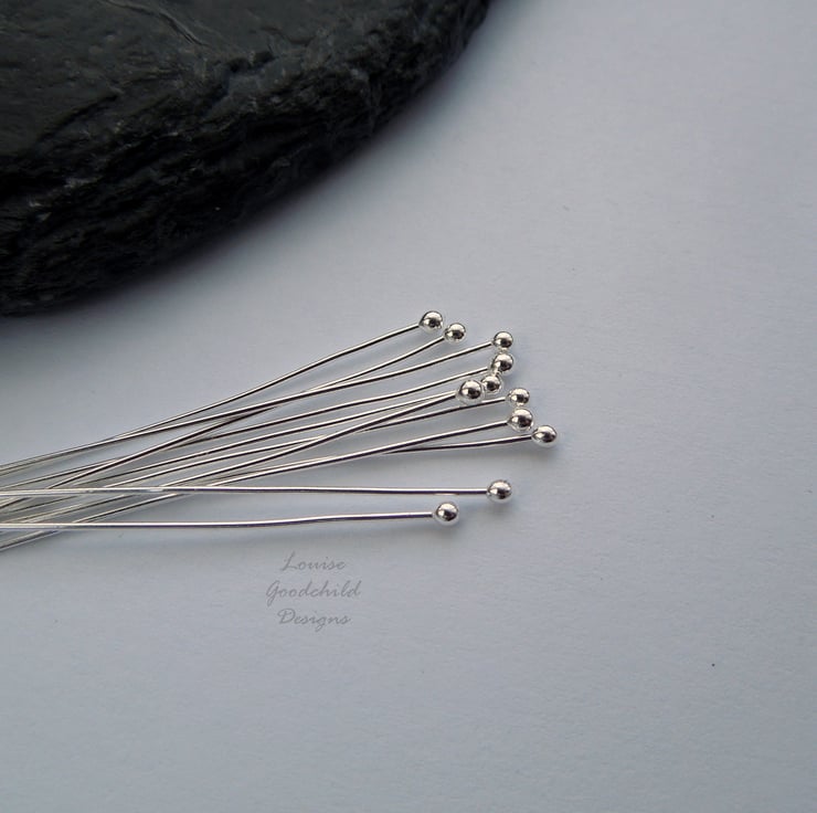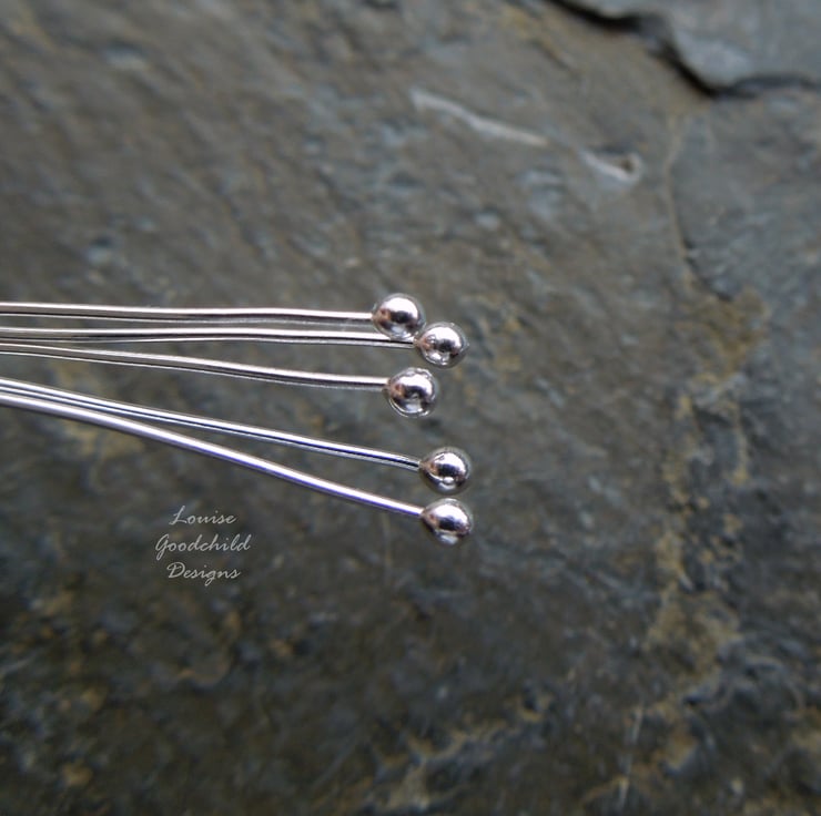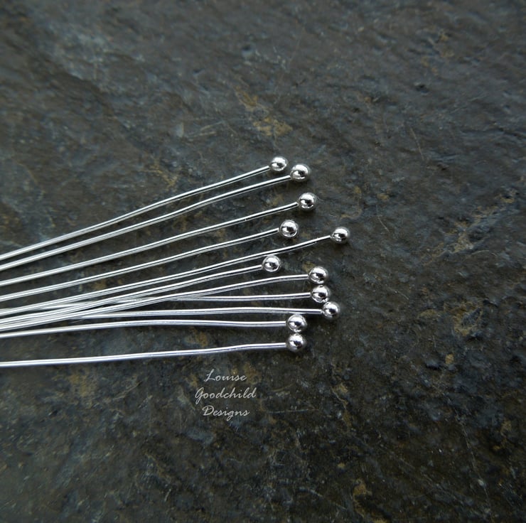 Handmade 24 gauge (0.5mm) ball-ended headpins in solid fine silver. Approximately 45mm long (they may be little longer, but won't be shorter).