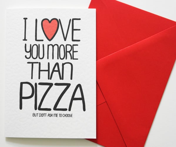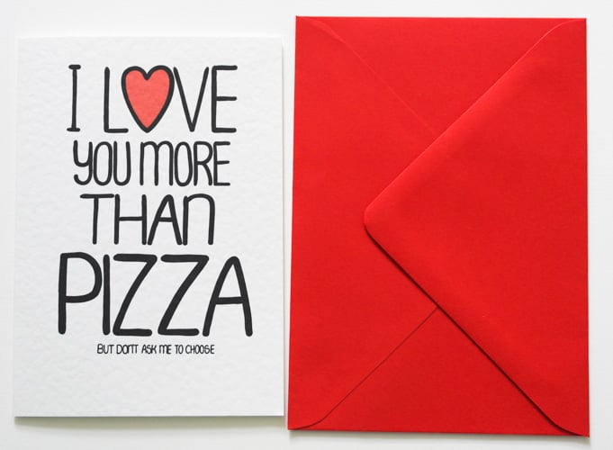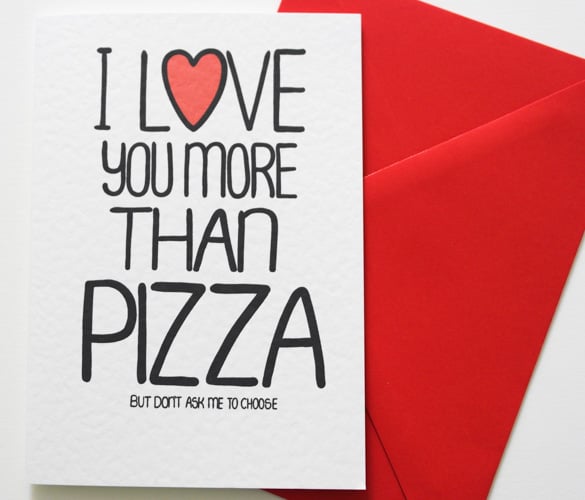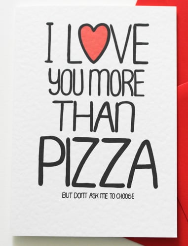A funny Valentine's, Birthday, Anniversary, Love card. Let someone know you love them more than Pizza