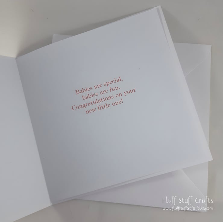 The card measures approximately 15cm (6") square and comes with a white envelope.
