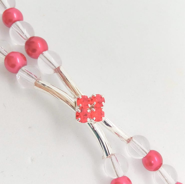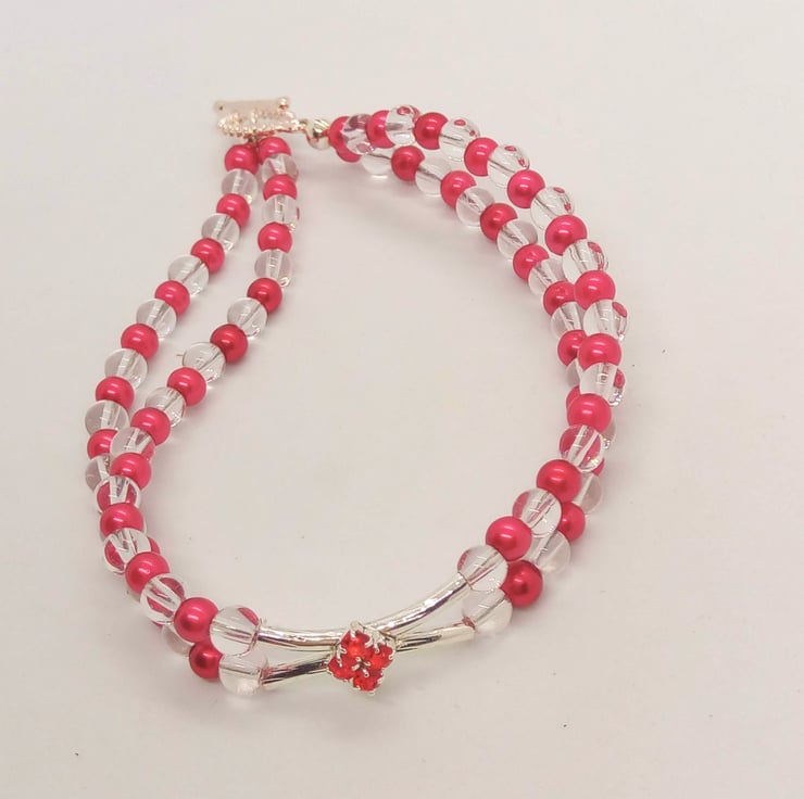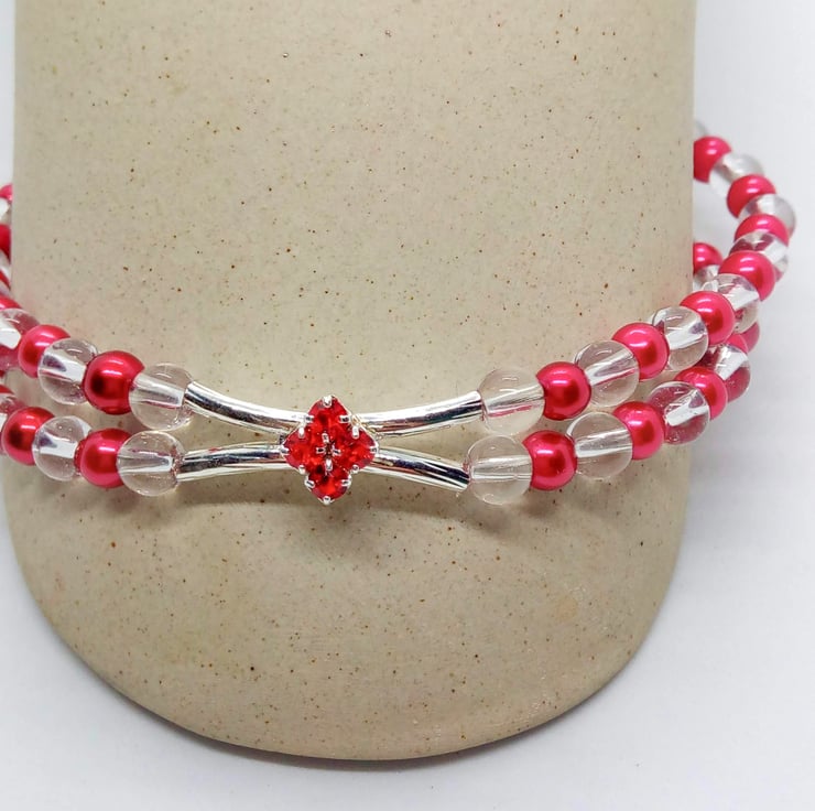 Red Crystal Centrepiece on a 2 Strand Red and Clear Beaded Band, Birthday Gift, Anniversary Gift, Mother's Day Gift, Valentine's Gift, Gift for Her, Ladies Accessories
