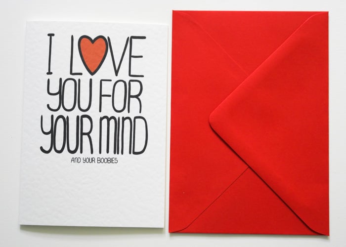 Greeting on front:I LOVE YOU FOR YOUR MIND AND YOUR BOOBIES