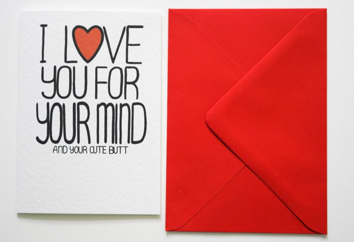 Greeting on front:I LOVE YOU FOR YOUR MIND AND YOUR CUTE BUTT