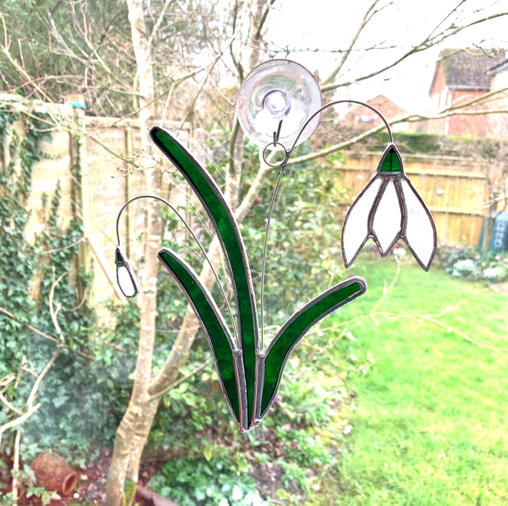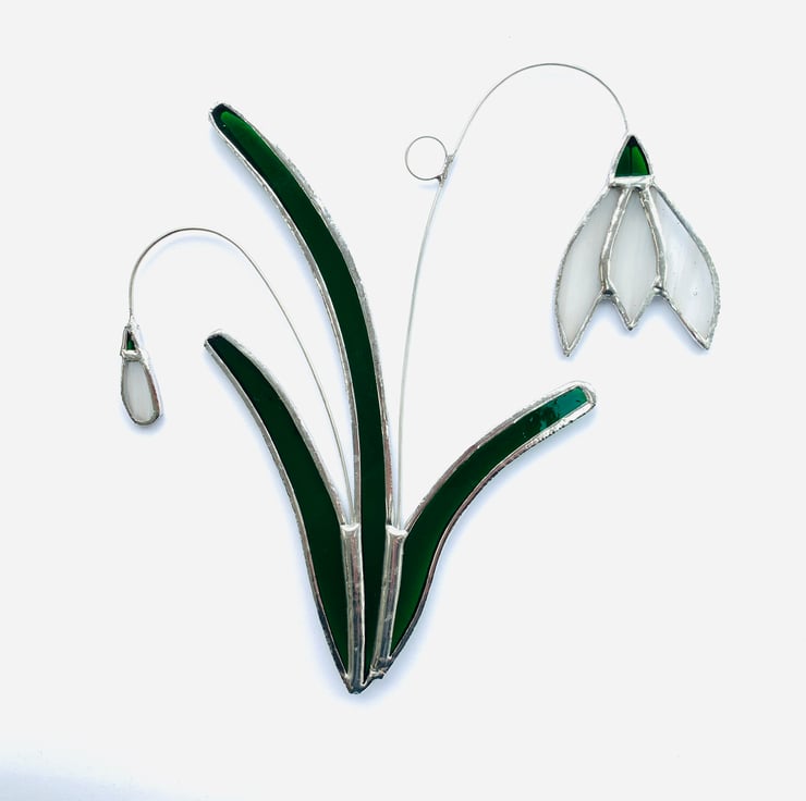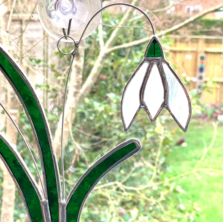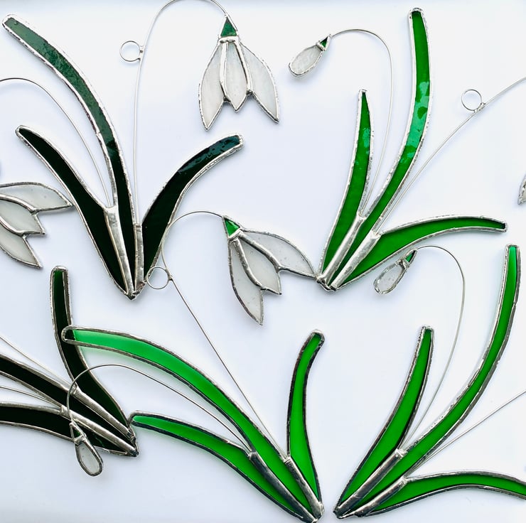 The snowdrops are the first flowers in the garden to flower, so the first to finish but here are some made out of stained glass so you can see them in the window all year round.