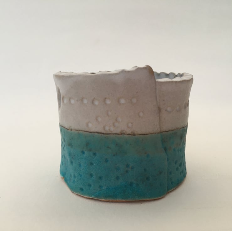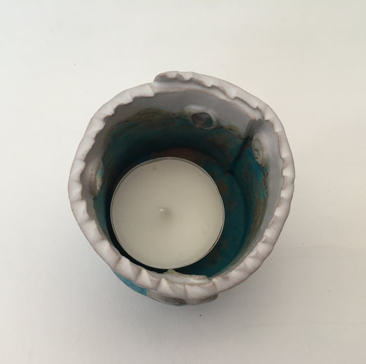 Ceramic tea light holder, handmade by myself using only my hands and a few tools.