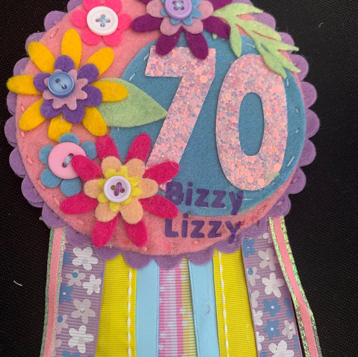 Birthday badge-Rosette Personalised - Flower theme - 50th- female