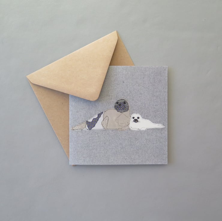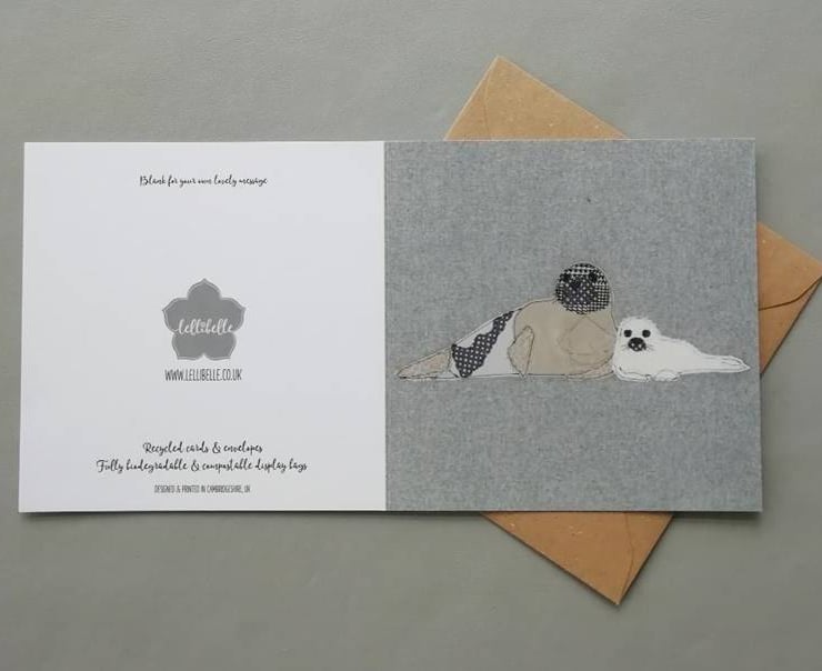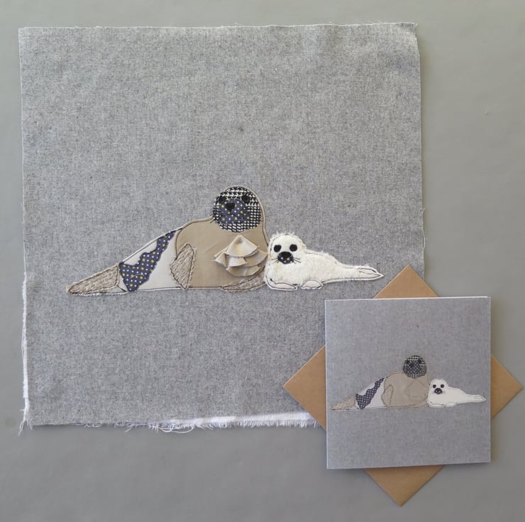 Original fabric appliqué designs which have been scanned, and then printed onto recycled card.