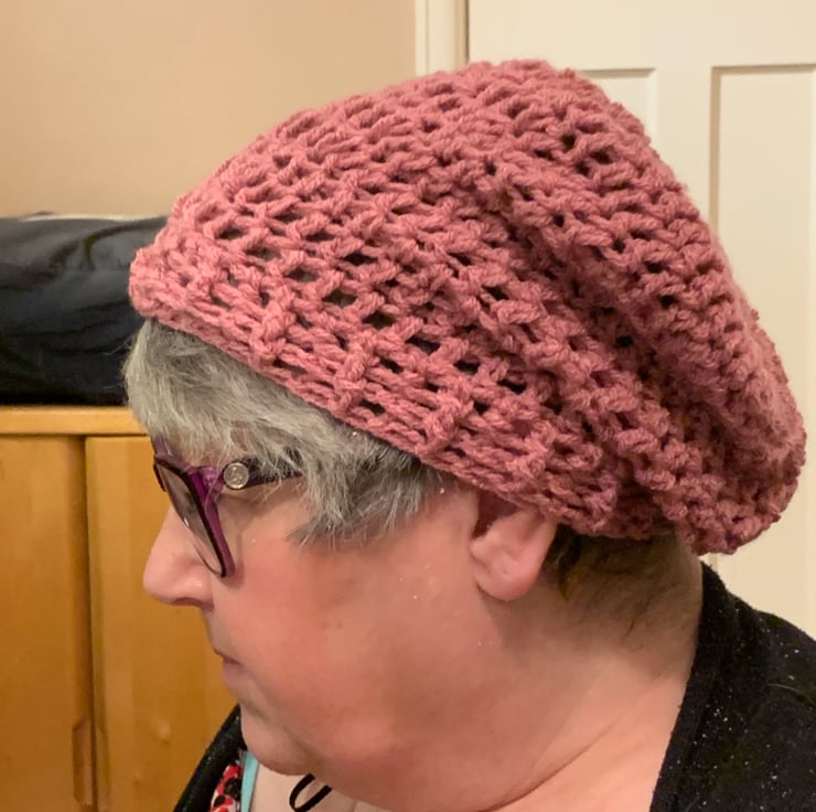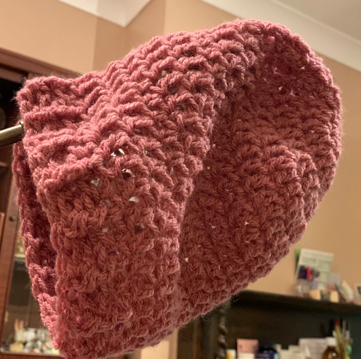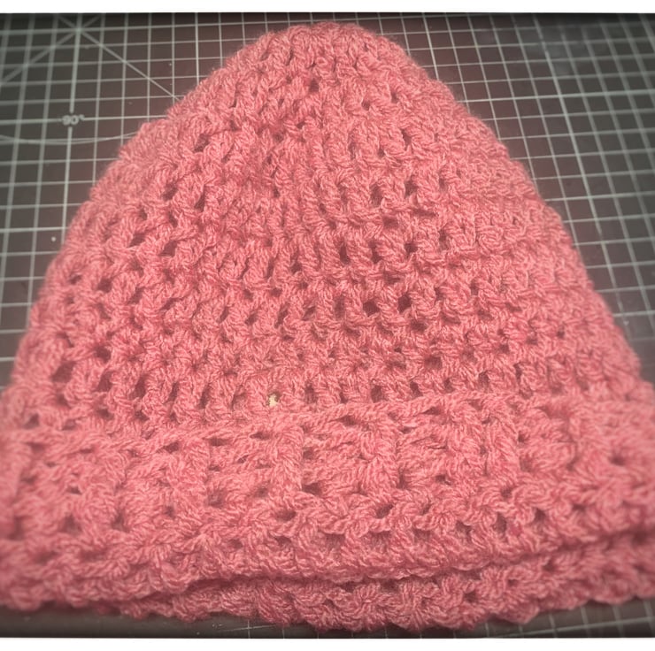 Hand crocheted Ladies Hat made out of rose pink Chunky Acrylic