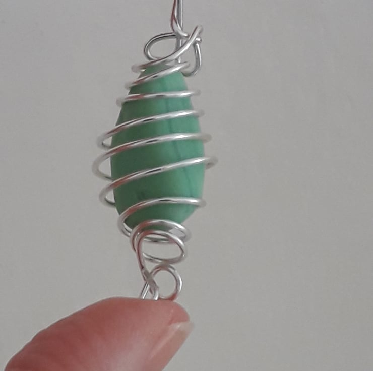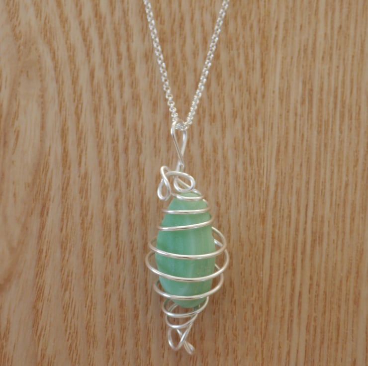 Each piece of my jewellery is uniquely designed and hand wrapped to fit the sea glass. This spiral necklace has quirky curls ! It is not a mass produced 'cage locket' but a handcrafted item which has had a lot of love and care spent on it.