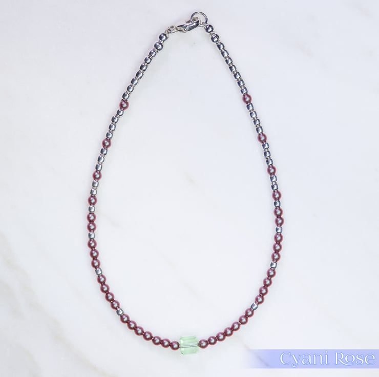 Genuine Swarovski glass pearls 2mm and pale green crystal cube beads 4mm.