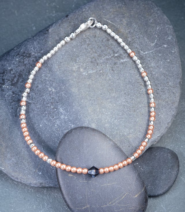 I love small bracelets and played around with designs using the Swarovski glass pearls. The bracelets are dainty and comfy.,